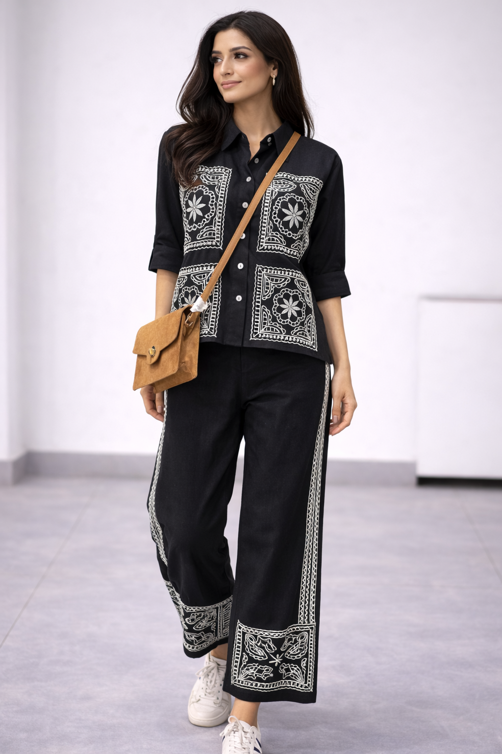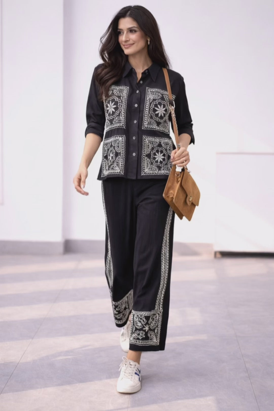 Elevate your everyday style with this sophisticated black embroidered co-ord set, designed for the modern woman who values effortless elegance and comfort. Crafted in a breathable fabric, this ensemble blends contemporary tailoring with intricate artisanal detailing, making it a versatile addition to your wardrobe.